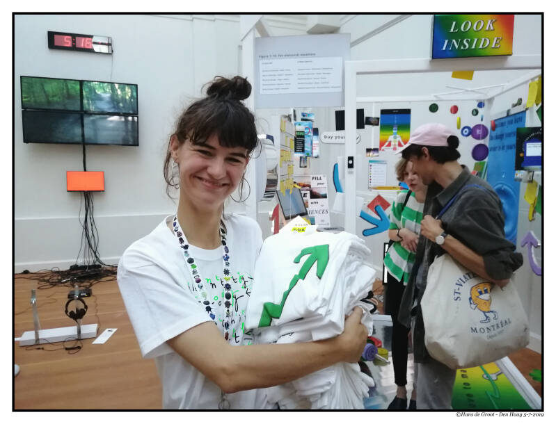 Mijn eerste oog viel op Emma en ik kwam haar tegen met een grote stapel T-shirts in haar armen met eigen ontworpen logo's.