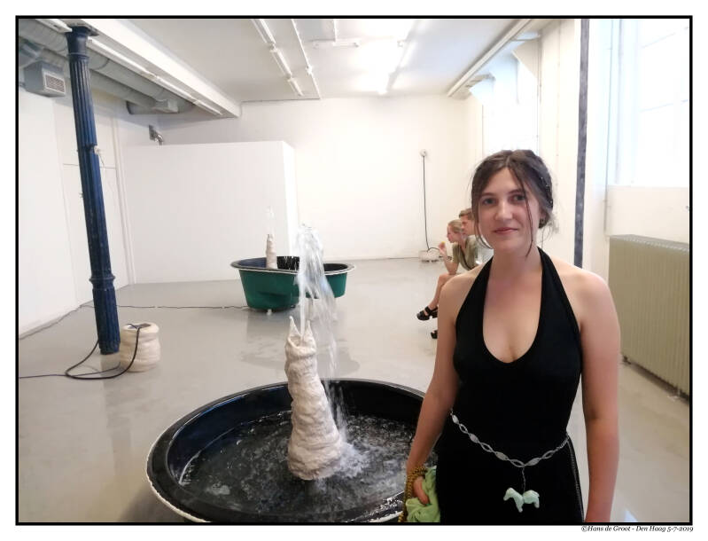 Here a short tour of less than 90 seconds through a few spaces and ending with the flowing refreshing spurting water from Natasha. When I go to her website www.natasharijkhoff.com I see a video with involvement in nature and in words and a song about love (You and me). I think the intention is pure. Nice mix of very extremely tall trees against humans
