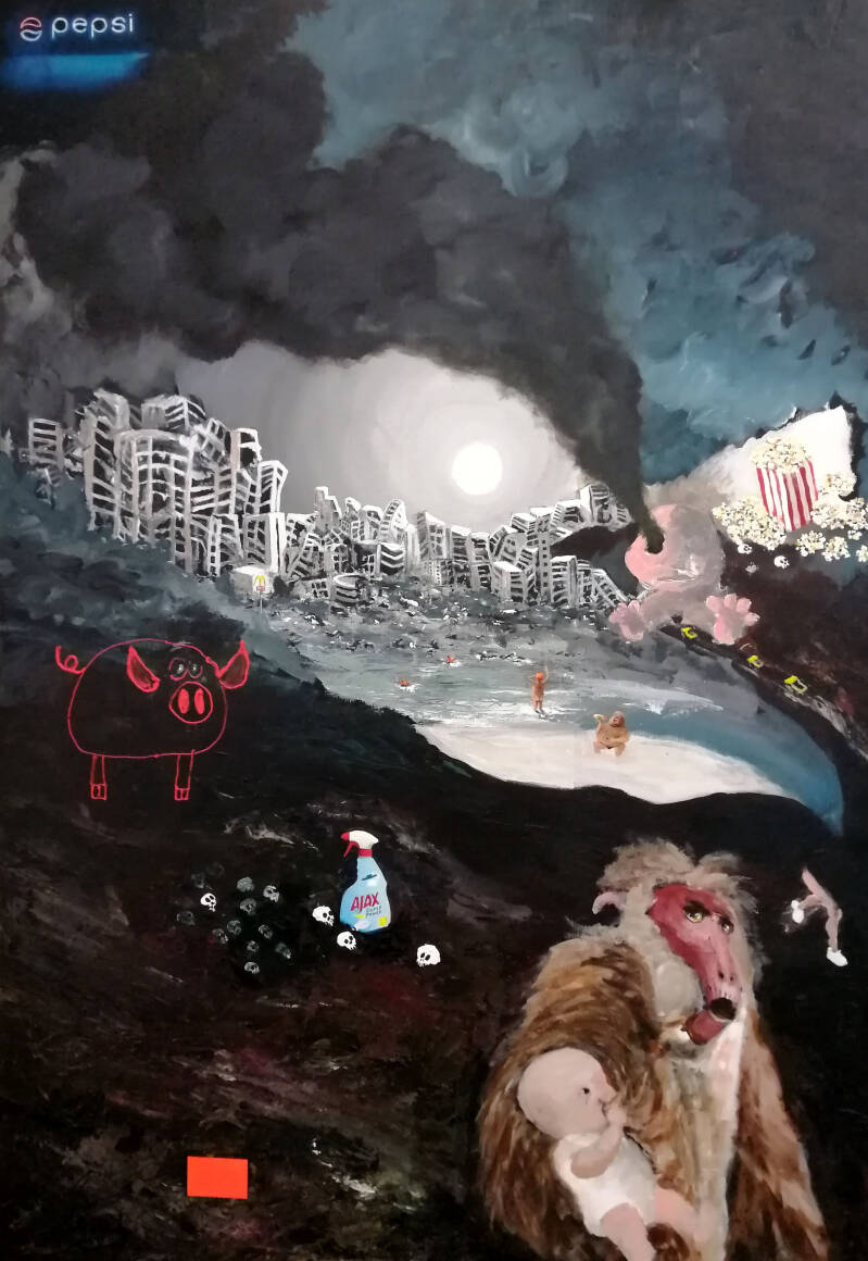 Soren work in the public space from different angles using different materials like iron-welding, stone carving to the use of polycarbonate and found materials. When he is not sculpting he draws and paints creating highly contemporary artwork heavily influenced by neo-expressionism, hyperrealism and the golden age, street art and low-brow art, comics with a strong narrative ranging from the bizarre, funny and humorous to the dark and somber referring to his own work as “Zombie expressionist art” (drawing on the dead and living or living dead). His works are often referencing his own childhood, teenage years, youth and darker subject like death, mortality, meaninglessness, loneliness, sex, relationships, inequity and social justice and the bizarre. Despite the somber subjects, and his obsession with death and time, most of his works have a delirious, fun, humorous, chaotic and optimistic feeling reflecting his own views: life is tough, chaotic, random and a struggle, but in the end there are always glimmers of hope and positive elements to carry you forward. “I hate the white cube, but I love white marshmallows” says Søren.